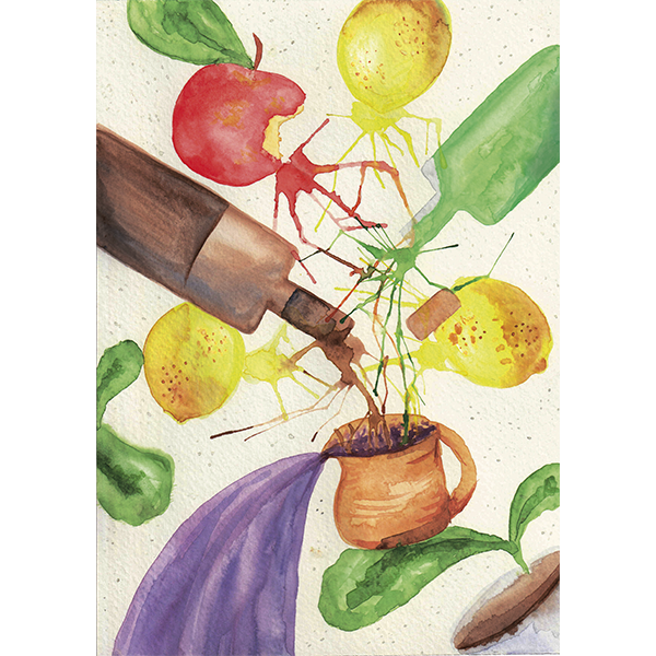 Z akvarelnimi ilustracijami sem naredila razgiban gif za izmišljeno razstavo.