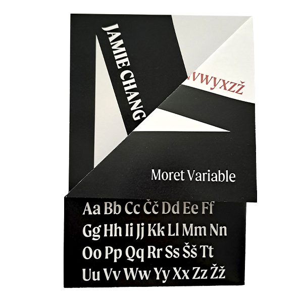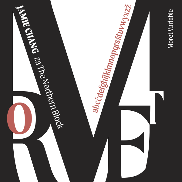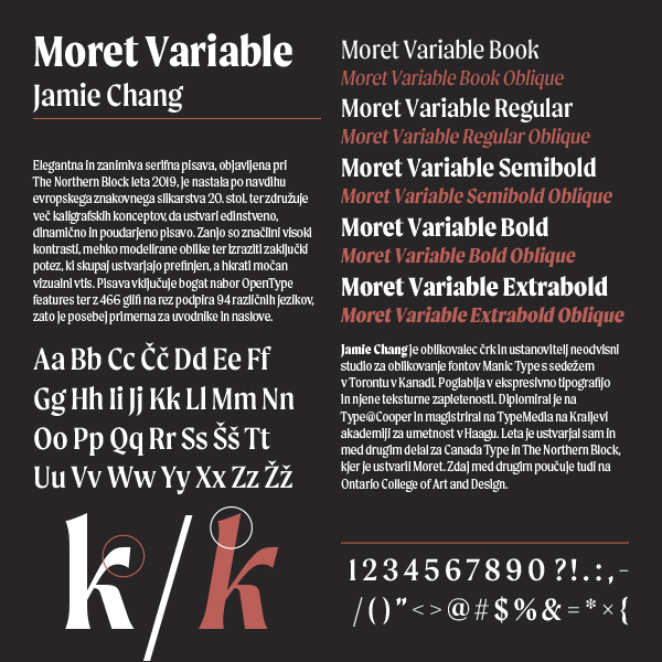 Predstavitev črkovne vrste Moret, ki je zelo elegantna, dinamična z zanimivimi zaključki. Zložila pa sem jo na malo bolj dinamičen načit, ki sproti razkriva vse svoje dele.