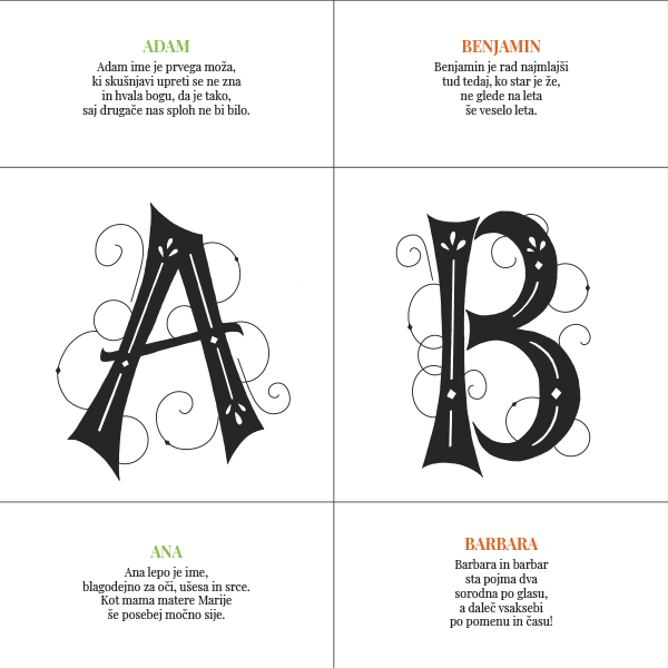 Inicijalke za vsako črko abecede, ki so uporabljene, kot glavni element v knjigi.